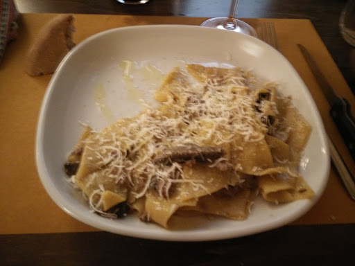 Sono appena tornato da Norcia dove ho disputato una 4 giorni di bridge tenutasi in un grande albergo locale dove avrei dovuto soggiornare in pensione completa. Non aver trovato posto libero nella sede principale è stata la mia fortuna perchè autonomamente mi sono sistemato in un eccellente struttura limitrofa, tra l'altro adiacente a questo gioiellino di ristorante. Dopo aver cenato la domenica sera a base di delizie del territorio (crostini al patè e stringozzi al tartufo entrambi sublimi accompognati da un Montefalco della casa azzeccatissimo)) non ho mancato nessun appuntamento sino al mercoledì sera assaggiando tante pietanze e manicaretti diversi, canticchiando, sottovoce ed a bocca chiusa, "questo o quella per me pari sono"....davanti a piatti tutti eccellenti !! Passiamo agli artefici ora : la sig.ra Giovanna, fulmine nel Servizio come alla cassa (per inciso il rapporto qualità/prezzo è ottimo), sa visibilmente come si governa una Sala e le diverse esigenze degli avventori ovviamente altrettanto diversi tra loto. Io devo averla facilitata in termini di fedeltà ricevendo un trattamento attento e professionale cui aggiungere la confidenza ed un quid di affetto che spero di essermi meritato a prescindere dalla "continuità". In cucina chef Riccardo :....che dire ? Parliamo di un innamorato del suo mestiere che ha messo a fattor comune le sue competenze con me, 70 enne rimasto solo per le insidie che la vita propone, illustrandomi, su mia richiesta naturalmente, le tecniche utilizzate per comporre taluni piatti speciali (spuntature realizzate a bassa cottura con aromi celestiali - il corretto utilizzo del tartufo, il calibro nella preparazione del patè di fegatini etc etc etc). Lo sottolineo perchè alcuni chef tengono per se ogni virgola delle proprie tecniche, gelosi del loro sapere e delle conseguenti creazioni. Non così Riccardo il quale, ai tratti dell' uomo riservato e per nulla invadente, aggiunge la generosità del professionista di valore. Cari lettori, capisco che vi siate stancati di fronte a questo "editoriale" ma il Cenacolo lo merita come merita la Vostra pazienza ed una...