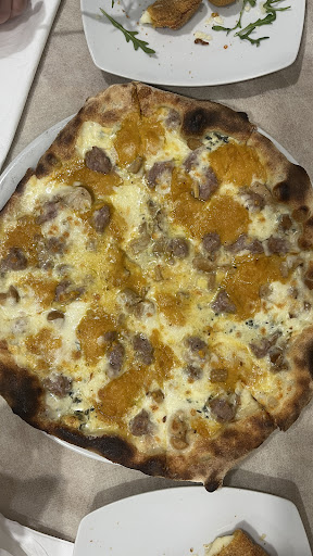 Appena entri senti subito il calore dell'accoglienza che danno, perfetto per qualsiasi occasione, da un primo appuntamento a una cena di famiglia o tra amici. Ci hanno accolti con olive all'ascolana, formaggio fritto con interno caldo e filante al punto giusto, pizza con crema di zucca, funghi 🍄🟫 e salsiccia… davvero buonissima 😋 Infatti Biagio il pizzaiolo, mette la sua simpatia e bravura non solo nelle pizze ma anche relazionandosi con voi, e se siete fortunati 🍀 una bella barzelletta non ve la toglie nessuno ! 😝😝