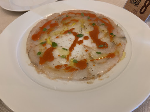 First of all, the staff is very kind, professional and caring. We got served some very very tasty fresh bread. I loved the olive bread, maybe a little plate with olive oil would have been perfect with this. We started with an Antipasti of carpaccio of shrimps, we loved it! The shrimp juice, the basil and the olive oil were perfect together. We then both ordered pasta dishes. Both were delicious and felt special but very light! We could easily have a very nice dinner, feeling full but still light. As tourists, sometimes in trattorias, we struggled with the portions. So we think the portions here were perfect. All in all, we‘re surprised by the rating this restaurant has, it deserves higher!