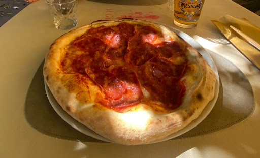 I had the green salad, it was slightly green. However if you are on a budget go to your local supermarket and chop up an iceberg lettuce. 1 ingredient. By the way the tomato salad is just a tomato ( buy it at the supermarket). One of our party noted it does say pizzeria maybe you should stick to that, the pizza was good. We read the reviews too late, and the carbonara IS just scrambled eggs on oily pasta with barely cooked bacon, listen to the reviews !. It’s the only place we have found carbonara in Italy maybe there’s a reason. It is in a lovely location however and the pizza was good value and service was very fast. Staff...