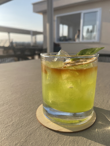 Su questa terrazza dalla quale si estende lo sguardo sull'intera costa del lido di Noto e del suo interno, si possono gustare ottimi cocktail, nonché una buona ristorazione lontano dai locali affollati e fighetti della zona. Risalta per il servizio discreto ed attentissimo, certamente superiore ai locali visitati in zona, che richiama ai migliori hotel di lusso. Servizio ed accoglienza in grado di nascondere qualunque pecca il locale abbia e che lo ha reso la nostra meta ambita di questa estate! Mantenendo orgogliosamente la sua connotazione Siciliana il sopracitato servizio trasforma il locale in una meta internazionale...