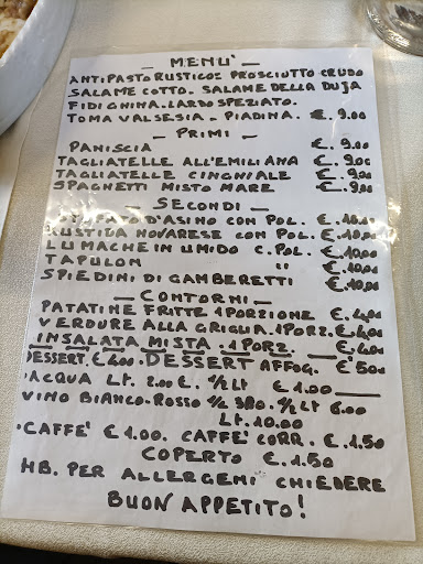 Read moreWe were here in May 2025 with a group of 9 people. Our first impression was great, this seems to be one of the few restaurants where everything is "made by hand" including the menu :-) The deception came with the Paniscia: this is supposed to be a kind of risotto with beans, but in our case it had been cooked like a cake (see photo) and the rice was totally overcooked. The server explained that they do this on Monday and Thursday ... !? Anyway, the following scaloppine al limone were much better. Overall: quite OK but the Paniscia should...