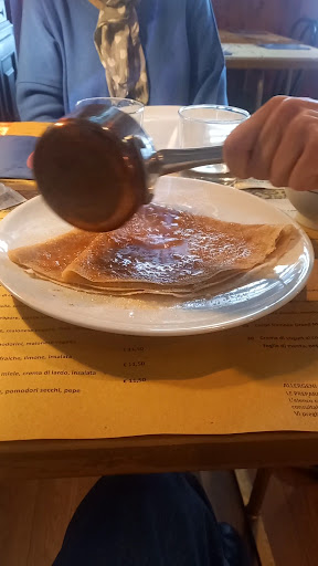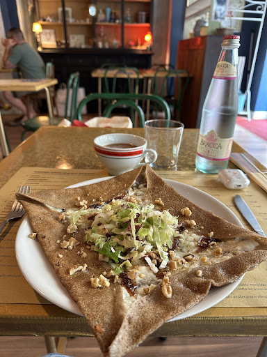 Had a really lovely lunch here. 30 crepes on the menu, 16 savoury and 14 sweet. I had the goat cheese with honey and walnuts for €9.50 and it was delicious. And very filling. I wanted to order a sweet crepe afterwards, but I was too full so I will have to go back another time to try just a sweet one. The decor is sweet and quirky and the music absolutely perfect for the setting and for enjoying a meal. The service was really good and the bathroom clean and pretty. The coperto is a bit expensive at €2 but that’s my only whinge. Everything else...