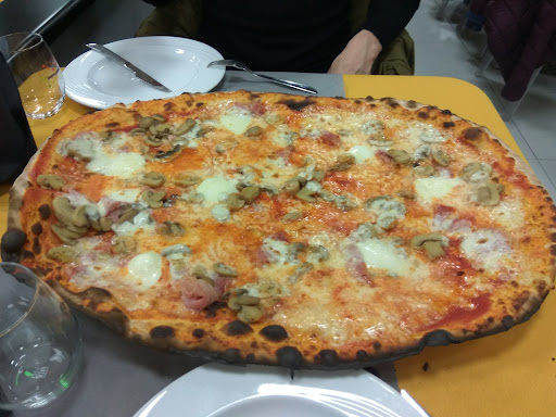 Read moreGreat pizza overall. The maxi sized one (in the photo below) is enormous, and more than enough for 2 people. The pizza in the photo is prosciutto e funghi. It does get cold very fast so it's recommended to eat it as quickly as possible. All the pizzas from the menu, if made in maxi size, cost 2 euros more. Therefore, the pizza in this photo cost 9 euros (7+2). They are also very thin, so they are easy to digest.
