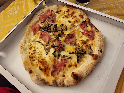 Pessima esperienza! Ordinato 2 pizze d'asporto: 1 rossa cotto e gorgonzola con patatine e 1 bianca cotto e funghi con patatine. Pagato in totale 14 euro, e fino a qui tutto bene. Nell'attesa fuori dal locale, attraverso la grande vetrina si vedeva la confusione di chi stava dall'altra parte del bancone. Ma vabbe, alla fine ciò che conta è la pizza buona. Dopo circa 10 minuti (attesa giusta rispetto alle persone che avevo davanti) dall'interno mi fanno cenno di entrare che le pizze sono pronte. Nell'andarmene via mi dicono che una delle due è venuta male, un po alta. Dico che fa niente ed esco. (A parte il fatto che se ti viene male un piatto, o in questo caso una pizza mai e poi mai la consegnerei così...piuttosto te la metti da parte e la rifai e mi dici di aspettare 5 min in più. Considerando che avevo già pagato al momento dell'ordine, quindi non avrebbero avuto modo neanche di farmi uno sconto). Arrivo a casa e apro i cartoni delle 2 pizze. In foto non rende ma a vedersi sono una peggio dell'altra. Quella bianca venuta alta come se l'avessi fatta a casa nel mio forno, con le patatine che probabilmente giocavano a nascondino; quella rossa aveva qualche patatina in più ma non saprei se erano più crude, inguardabili o schifose. Il gorgonzola era buono ma il cotto palesemente di pessima qualità. Peccato perché il locale ispira fiducia, pulito e luminoso con prezzi nella media. L'impasto neanche male ma sommando tutto non ci tornerei mai. Davvero sconsigliato! ...