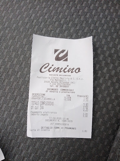 Read moreLa mia esperienza è triste. La prima torta che ho comprato era fantastica (da qui la valutazione a 2 stelle) Mi hanno fatto tutti i complimenti e chiesto dove l’avessi comprata.La seconda è stata un disastro. Era palesemente bruciata, hanno cercato di nascondere il problema con la decorazione e hanno venduto le torte comunque. Al reclamare ci ha fatto il 50% su un altra. Quest’altra 12 ore dopo averla comprata era ancora congelata al centro…Non saprei che dire. Abbiamo fatto una figuraccia con le torte. Credo che non ha capito bene quanto sia importante il passa parola. Ci siamo sentiti presi in giro. Il proprietario o responsabile mi sembra un po’ presuntuoso e sinceramente non credo gli sia importato più di tanto. Già il fatto che sia poco gentile l’ho notato in altre occasioni però con il flop delle torte abbiamo chiuso con Cimino. Vorrei che con questo commento capisse che c’è qualcosa che non va e cercasse di cambiarlo. Perché il potenziale il posto ce l’ha e me lo ha dimostrato con la prima torta, però non puoi trattare i tuoi clienti come se gli stessi...
