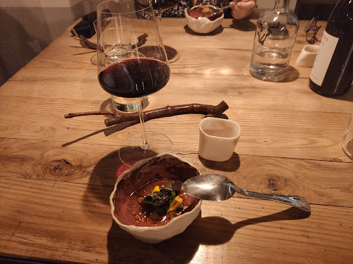 Read moreAnt is the most innovative restaurant I've visited in a long time. From the street, it makes you wonder if you're in the right place, but once you enter through the old gate, things unfold one after another: the lovely courtyard, the chic dining room with vine branches as silverware holders and hand-carved cow bones as napkin rings, the tastefully renovated old cellar, with wine bottles and pickle jars, the friendly staff - and, last but not least, the food. Our seven courses surprise dinner menu was simply spectacular. Just a few mentions, with apologies if not entirely correct: tomato soup with dashi base; a dish made from corn, cooked several ways, with coriander and feta cheese; and a pork belly roast to die for. All of this accompanied by a wine that one could select directly from their cellar - that made for a really memorable...