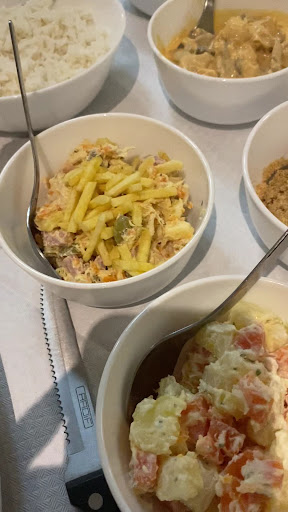A comida que eu comi que estava boa NÃO era do restaurante, era de um evento de brasileiros que estavam usando o espaço da churrascaria. Eles fizeram a comida e levaram. Nada tinha a ver com o feijão do restaurante. Sobre a culinária brasileira ser diversificada, isso é fato, mas numa churrascaria servirem molho de cachorro quente e strogonoff nada mais é que para entupir o cliente enquanto ele espera por mais de 40 minutos para que passem uma primeira carne. Talvez não conheçam de fato o conceito de rodízio, pois de nada é prático nem satisfatório se você precisar esperar por mais de 40 minutos enquanto sua comida da mesa já está fria, isso para comer UMA carne que no caso foi a picanha, pois presunto e frango no espeto eram as...