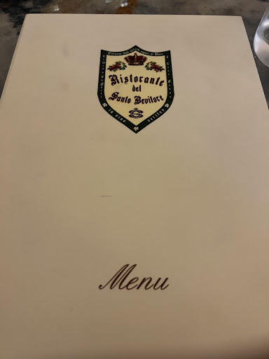 Esperienza sublime! Di ritorno dalle Terme Bella Vita di Spinetta Marengo pensiamo inizialmente di proseguire verso Nord ad Alessandria per la sagra della bagna cauda, previsioni di maltempo ci fanno ripensare di tornare a Genova percorrendo la SS45 dei Giovi. Googlando un ultima volta per una bagna cauda tra i tanti ristoranti compare il "Santo Bevitore". Chiamiamo per prenotare, tavolo per 2 libero? Arriviamo! Scorrendo un menú di prelibatezze oltre alla bagna cauda vedo anche il bollito misto. Difficile trovarlo ormai nei ristoranti.. Ordiniamo quindi Crema di topinambur con polpo alla piastra, Agnolotti ai 3 arrosti, Bagna cauda e bollito con 4 salse (ai grani di senape, al peperone rosso e acciughe, alla mostarda e la classica salsa verde), tutto annaffiato con un fantastico barbera d'Asti vitigno Lavignone doc della cantina Pico Maccario, completato con delizioso tirami-súper e caffè servito con dolcetti e 4 tipi di zucchero a scelta. Oltre alla elevata qualità dei prodotti, preparati magistralmente da una cucina di alta esperienza anche abile nell'impiattamento, emozione anche per gli occhi, un plauso va al servizio in sala preparatissimo anche nello spiegare le origini dei prodotti e la loro preparazione. Ambiente fantastico in edificio storico con giardino esterno e soprastante albergo (La Corona), in sala troverete una lunga fila di vini in cella frigorifera a vista, tagli di fassona, formaggi ecc.. Conto 60€ a testa, per alcuni possono sembrare troppi ma in una pizzeria/trattoria da 15/20€ non hai un livello del genere, contando che 25€ sono già per la bottiglia di vino, che consumata solo metà hanno messo in borsetta di carta per terminare il consumo a casa. Offerti dalla casa un gustoso stuzzichino di antipasto e una semplice ma ottima fetta di limone abbattuta zuccherata e con spolverata di caffè, ottimo come...