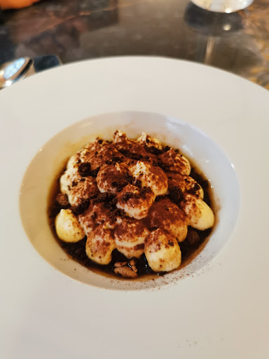 Read moreTrovatomi per caso a Novi Ligure, a pranzo opto per questo ristorante. Cucina sufficiente curata, ma senza note di eccessivo entusiasmo. Di cortesia il servizio sebbene lento e talvolta distratto, nonostante il locale fosse semi deserto. Discutibili altre scelte commerciali. La mancanza di una tovaglia o runner, indipendentemente dalla pulizia, resta un “azzardo” di eleganza. Comprendendo il tentativo di una cucina gourmet, le porzioni sono davvero imbarazzanti. Scarsa la mescita del vino. Scelto di degustare uno champagne di cui non discuto la qualità, ma il quantitativo è al limite dell’assaggio. Deludente la scelta del “minestrone” di frutta presentata in piccolissimi pezzi di frutta in quantità assolutamente scarsa. Tale portata di frutta condita, al momento, con una colata di acqua alla violetta che avrei volentieri evitato! Personalmente trovata stucchevole. (Chiedere, magari, se la si desidera, sarebbe un gesto di cortesia). E si arriva al caffé, accompagnato da alcuni biscottini (3) “offerti”. Perdonatemi, ma €4,00 un caffè??? Probabilmente riassume, semplicemente, quanto...