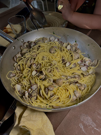 Premetto che alla fine abbiamo mangiato anche discretamente. Ma non ci siamo su tanti aspetti, e siccome li ho trovati simpatici spero che sia la mia una critica costruttiva per migliorarsi perché cmq oltre alla mia ci sono diverse recensioni negative. Allora abbiamo scelto di prendere l'apericenia perché eravamo di rientro da una passeggiata e volevamo qualcosa di semplice ma cmq sostanzioso.dopo due portatine e un calice offerto(crostini semplici, due ostriche per impressionare, e poi un piattino di vongole e raguse, poche) mi aspettavo di avere qualcosa altro. Infatti il cameriere mi propone un primo e un secondo che io penso siano sempre compresi. Così non era. Ma non si fa ragazzi... Non siamo turisti per caso, la gente deve sapere cosa spende e cosa costano i piatti, cosa è compreso e cosa no, non siamo più negli anni 80 e non siamo russi da intortare. Cameriere gentile ma non corretto nell informare il cliente. I piatti non erano male ma decisamente poco armonici. La carbonara di mare buona, ma non ci devi mettere la panna! Per poca che sia si sentiva il sapore del latte.. Usa un addesante, qualcosa di altro, o niente! Poi sinceramente io sono intollerante (poco, non mi succede niente) ma il cliente deve sapere se c'è lattosio in un piatto. Concludo nel ribadire che ho trovato simpatico il posto, ma dovete essere un più chiari, l apericena va aumentato di quantità e come diceva un cliente in una recensione dovete prender una direzione chiara, anche per distinguersi, ma chiara, perché non si capisce cosa siete. Grazie e spero sia costruttivo il...