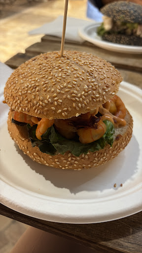 Stopped to get a takeaway lunch , and decided to try here . Great seafood burgers ! We tried a few , and they were generously filled , quick to arrive , and very tasty . So much so that we forgot to take pictures of the food ! You can eat in as well , but they do takeaway which was handy . Lovely ladies serving and making the rolls who were helpful and friendly...