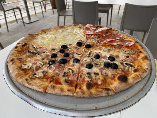 Pizzeria Sotto La Rocca Numana offers a unique concept centered around their maxi pizza, where you're obliged to choose up to four different types or ingredients. We opted for three, and honestly, one pizza was more than enough for two people—great for sharing.