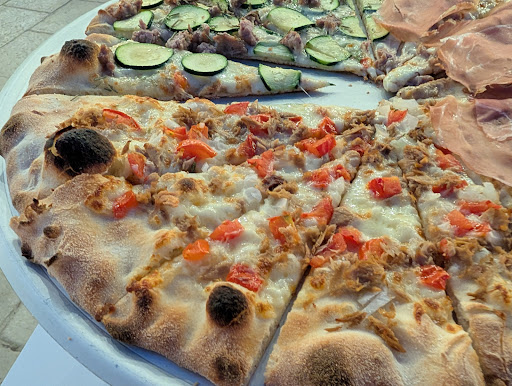 Read moreIn 2 , Pizza maxi a 4 gusti consumata il giovedi sera all aperto (gusti stracchino rucola - parmigiana - alberto - marinara piu mozzarella ) Spiace non riuscire a scrivere considerazioni positive perché quanto meno sui prodotti consumati il mito sotto la rocca stasera non pervenuto. Perche? Nei 4 gusti riscontriamo, seppur su di un impasto "biscottato" gradevole, una pizza anemica, insipida, scondita, stracotta , cornicione pochino troppo ampio a sacrificare spazio al condimento. lo stracchino della stracchino rucola evaporato o non pervenuto, il pomodoro con la mozzarella della marinara assieme all origano non pervenuti forse perché pochi, un po simile ad un terreno marziano "crostificato" e chi sa di marinara sa che deve languire di sugo, nella gusto "alberto" coriandoli autentici di prosciutto cotto e di funghi che dei loro sapori regalavano niente In sostanza effetto succulenza da boccone pizza lo stiamo ancora cercando per Numana, Parmigiana che dovrebbe essere tripudio del condimento in bocca riesce ad essere asciutta, secca e solo effetto salsiccia in bocca Ora, come detto al cameriere, fossi stato il pizzaiolo io a casa mia una pizza cosi non l'avrei fatta uscire verso i commensali, gia alla vista di questo asciuttame dei condimenti. Sbaglieró o non rispetteró i canoni della rocca ma la mozzarella deve filare Su tutti i gusti in cui é compresa. Da voi la mozzella "crostifica"