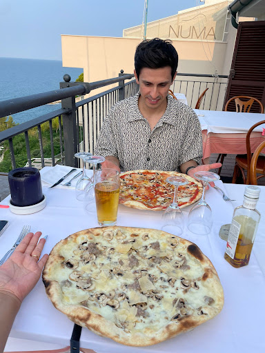 Read moreLoved it. Discovered by accident whilst strolling through Numana. Wonderfully eclectic décor with a million and one pictures and photos to look at if you ever get bored of the view. Which you won't. This place overhangs the cliffs of Numana looking out to sea. We ate while the sun went down. Beautiful. If you like pizza then this is the place. Every type of pizza you can imagine. We didn't eat pasta but the large plates of pasta coming out smelt amazing. Topped off with young and friendly staff made this the best surprise of our holiday. We'll definitely be back before...