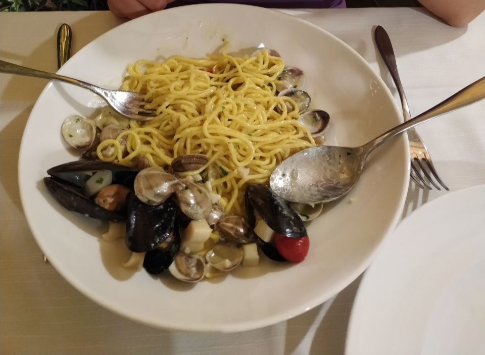 Read moreIl ristorantino si trova in una stradina del centro di Numana, affaccia direttamente su una strada poco trafficata, ha i tavolini sistemati, piuttosto stretti fra loro, in un gazebo esterno, accessibile con delle scalette. Altrimenti ci sono altri coperti nella saletta interna. Le portate sono buone ma niente di eccezionale,purtroppo non ho trovato l'effetto wow in nessuno dei piatti ordinati. A mio avviso, le quantità delle portate sono un po' scarse, considerato il prezzo che si paga. Non sono organizzati per preparare cibo più semplice per i bambini, magari con formati di pasta più convenzionali (penne, maccheroni), infatti si possono ordinare solo gnocchi, tagliolini o strozzapreti. Il pesce comunque era freschissimo e la frittura di pesce croccante. Considerando la location, le quantità, e la cifra spesa (120€ circa in due+2 bambini, per aver preso una porzione di gnocchi, due antipasti, una frittura, un calamaro al forno, acqua, e un calice)...non riesco a dare più...