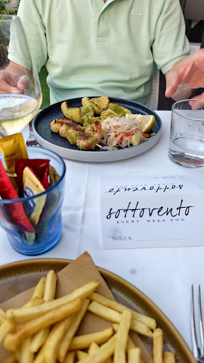 Read moreHo cenato due volte in questo ristorante durante le mie vacanze. Le esperienze sono state diverse. La prima volta siamo stati posizionati vicino a delle lampade che cambiavano colore continuamente che non solo non facevano luce, tutt’attorno era buio e non si vedeva cosa si mangiava, ma erano molto fastidiose! Preso due pizze che ci sono piaciute e un buon fritto misto. Servizio da rivedere, mio foglio ha cominciato a mangiare il fritto e solo quando ha finito sono arrivate le pizze, nel frattempo la birra è diventata calda e fatto notare al cameriere la risposta è stata: ci penso io, pensiamo: ci porterà della birra fresca! E invece NO! Ci porta le pizze e stop… nessuna scusa, nessuna risoluzione alla nostra osservazione. Avete da imparare…. La seconda volta, visto che comunque il pesce qui è buono, prendiamo due primi di pesce, un fritto misto e mio figlio prende hamburger e patatine, questa volta veniamo serviti tutti insieme, bene, l’hamburgher (15euro) non è proprio all’altezza, secco, pane secco, tre patatine… per 15 euro mi aspetto una fettina di formaggio almeno, il cameriere ci ha detto che c’era visto che abbiamo fatto togliere pomodoro e insalata, almeno una misera sottiletta ci stava… i primi sono ottimi, anche qui per quello che spendo, 16 euro a piatto, mi aspetto delle porzioni diverse, non ci portano il pane che per fare la scarpetta (e visto che ci fanno fare la fame) ci sta, lo chiediamo noi. Con il vino non arrivano i bicchieri per il vino. Tempi giusti per la frittura che arriva dopo i primi e si conferma buona come la prima volta, molte verdurine e pochi gamberi…. Esattamente 3! Conclusione: si mangia bene, con porzioni scarse e servizio al...