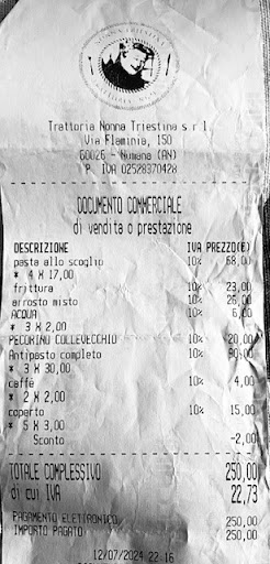 Da diversi anni ci rechiamo in questa trattoria, e ci siamo sempre trovati bene, ottima cucina e personale di sala simpatico e competente. Il giorno 12 Luglio in occasione del compleanno della figlia, come da tradizione famigliare, festeggiamo in questa trattoria; ci presentiamo in 5 persone e chiediamo al cameriere la possibilità di ordinare 3 menù degustazione visto l'abbondanza dei piatti. Il cameriere ci conferma "facciamo come gli altri anni vi preparo 3 menù degustazione faccio io ", Il menù degustazione costa circa 35/40 eur a persona con dolce compreso pur prendendo la bottiglia di buon bianco nn abbiamo mai speso oltre i 150 euro. Dopo aver mangiato bene come al solito arriva il conto...250 euro!!!! Dopo le nostre rimostranze al cameriere, lo stesso in modo non proprio competente, e con aria supponente ci dice che abbiamo mangiato tanto, peccato che non ha applicato il menù degustazione ,preso il menù alla carta fatto tutto lui moltiplicando il prezzo per 4 o 3 a piacimento basta vedere la voce 3 antipasti a 90 euro!!!!! senza nulla togliere al posto e alla qualità del cibo rimane pur sempre una trattoria, ma con prezzi che sul territorio di Numana si addicono a ristoranti ben più blasonati.(vedi la torre di Numana che con 180 euro abbiamo mangiato in 5). Ovviamente poi salta fuori la scusa retorica dei rincari della luce del gas ecc..rincari che colpiscono tutti non solo loro, comunque il proprietario con cui abbiamo sempre avuto buon rapporto, quando lo abbiamo contattato non si è espresso limitandosi a confermare il tutto con un OK molto sterile . Bene dopo 7 anni è stata l'ultima volta che siamo stati a mangiare in questa trattoria, dove il cibo è buono, la comunicazione e la trasparenza invece pessima ,con tanta voglia di far soldi a discapito della clientela di lungo corso. Anni fa bisognava prenotare con molto anticipo, per avere un posto, venerdi sera di luglio cerano forse 10 persone che hanno mangiato velocemente un piatto e si sono alzate forse un segnale da non sottovalutare. In ogni caso ovviamente puoi ingannare una volta ma poi perdi il cliente, io il 27 del mese lo stipendio lo prendo comunque. Buon proseguimento e...