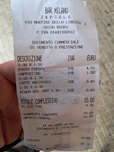 Read moreBar a Nuoro che forse crede di essere in piazza Duomo a Milano. Prezzi delle brioche esagerati, latte bianco pagato stesso prezzo del latte macchiato mai successo, chiesto bicchierino d'acqua per accompagnare la colazione che ovviamente è stato fatto pagare. Ma tolto tutto ciò che non avrebbe giustificato una recensione negativa ci tengo a evidenziare la gentilezza (si fa per dire) e cordialità della barista nell'atteggiamento in generale. Chiesta la chiave del bagno delle donne mi viene detto con sgarbo che è attaccata alla porta (ovviamente non c'era altrimenti non l'avrei chiesta). Ho usato il bagno degli uomini perché avevo fretta non dico le condizioni. Forse un sorriso in più e modi più accoglienti sarebbero di aiuto per un lavoro del genere, suppongo comunque che ciò sia dovuto alla nostra natura di "turisti" dato che purtroppo non è la prima volta che ci scontriamo con "l'ospitalità" sarda (non generalizzo eh, non è così dappertutto anzi ma siamo incappato in diversi...