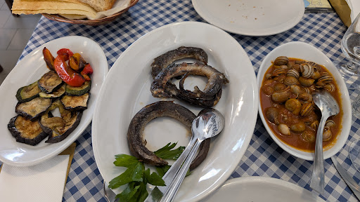 The eels were boney as expected. Since it was not the first time we had eels, we managed to pick out all the tiny bones. If you have never tried it before, don't say I never warn you. The eels were extremely fresh. If they were not, trust me, we would know because they would give out this distinctive taste/smell. The sea snails tasted like escargot. They don't surprise me that much; it was the tomato sauce that caught my attention. It elevated my taste buds so much that I had to dip bread in it to clean the plate. The grilled vegetables were done in the typical Sardinian way - fully caramelized and cooked in olive oil. No further explanation was necessary.