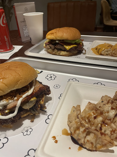 Hamburger diversi dal solito, ottimi per chi vuole provare qualcosa di nuovo. Il bun è sofficissimo, gli hamburger smashati e i gyoza fritti sono gustosi (puoi scegliere la salsa) e succosi all’interno. Devo dire ben curati! Per 2 menù con ravioli 36.40€, provato il Korean Spicy e il Chachu. Si ordina alla cassa, lasci il nome e poi ti portano il vassoio. Locale accogliente con sedute comode e complessivamente fine e coerente con il prodotto offerto!