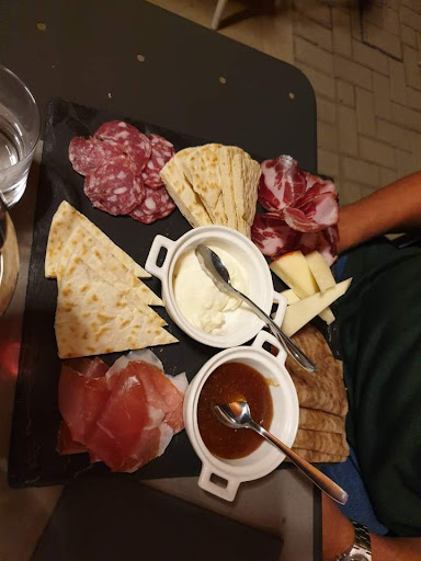 Read moreAllora sono andato in questo posto che non conoscevo,per ascoltare un gruppo di amici che suonavano lì,dopo che mi avevano sistemato ad un tavolo un po non troppo bello quando è arrivata la cameriera "proprietaria ho capito"ho chiesto se potevo andare in un tavolo migliore per vedere lo spettacolo ma mi è stato negato,ho pensato ok sara tutto esaurito,invece io ho praticamente fatto chiusura e i tavoli non si sono riempiti,quindi questa è la prima stella ma diciamo che è la cosa che ho tolto 2 stelle,la seconda ho ordinato e dopo 1 ora e 15 solo l'antipasto mi era arrivato e quello quasi subito,dopo parlando con un'altra cameriera ho capito che era stato un suo sbaglio e si è scusata e subito ci ha servito tutto il resto con cura,ma essendo andato per l'evento la cosa non mi ha disturbato troppo,in caso contrario mi avrebbe fatto impanzientire sicuramente,ma la giovane cameriera è stata impeccabile dopo questa svista.Allora alla fine veniamo al cibo,abbiamo preso 2 antipasti 1 tagliere di salumi e un gambero croccante,1 passatello e 2 tagliate acqua 1 bottiglia di rosso 1 caffe e 1 amaro speso 99 euro tutto buono ma prezzo eccessivo per porzioni non dico scarse ma non certo abbondanti,diciamo che lo spettacolo è stato super e quindi non mi lamento ma se dovessi tornarci non saprei non tanto per rapporto qualità e prezzo ma più che altro il non farmi cambiar tavolo quando era una cosa possibile, se dovessi consigliarlo direi no si trova di meglio e se tornerei nemmeno ho trovato scortese la proprietaria che mi ha negato un'altro tavolo che è rimasto vuoto tutta la...