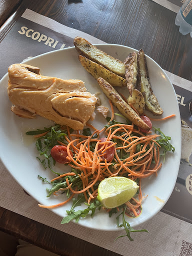 Read moreSpeso 86 euro in tre per :una porzione di nachos da dividere,una grigliata mista per due persone,un un menù hamburger più patate e bibita, un acqua naturale, una coca e un dolce(,un dolce in totale non un dolce a persona), niente caffè. Per il conto pazienza i prezzi sono scritti sul menù, il punto è che quando spendi tanto la qualità deve essere alta. La grigliata era composta da 2 wurstel, 2 pezzi di pollo e due di manzo stracotti e immangiabili da quanto secchi. Tutto gonfiato da patate fritte e verdure alla griglia ma non giustifica i 34 euro spesi per la grigliata. Il panino del menù non si poteva mangiare, era mal composto e probabilmente era tenuto pronto in caldo da un bel po',la base di pane era completamente bagnata , inzuppata si rompeva in mano,c era una fetta di pomodoro moscia e una foglia di insalata ormai cotta, il formaggio non c'era era scivolato tutto fuori, bacon totalmente insapore come anche i due hamburger all'interno del panino. Anche le patate fritte non erano cotte sicuramente espresse ma preparate in anticipo e scaldate. Buoni i nachos.Capisco che era domenica a pranzo e il locale abbastanza pieno anche se siamo arrivati alle 14 passate,ma quando le cose si fanno pagare come al ristorante,la qualità deve essere da ristorante. Personale di sala poco e visibilmente in affanno ma comunque...