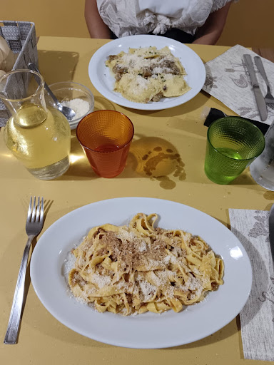 Read moreConsultando le foto di Google, decidiamo di provare questa piccola trattoria, spinti dalla presentazione dei piatti. Appena arrivati ci caliamo subito in un'atmosfera famigliare, data dai gestori molto gentili e cordiali e dagli altri clienti, tutti molto alla buona. Non c'è un menù scritto (che a nostro modesto parere è un sinonimo di freschezza). Si mangia quello che è stato preparato per quel giorno, seguendo le stagionalità. E l'offerta non è affatto limitata, ma anzi, ricca e diversificata. È la titolare stessa, che venendo al tavolo espone i piatti del giorno. Abbiamo optato per delle tagliatelle al ragù e dei tortelli ripieni di patate con sugo di porcini, entrambi ottimi. A seguire, salsiccia con contorno di friggione e stufato di pecora e patate. Con un'insalata, acqua e vino, abbiamo speso complessivamente 45€. Ottimo rapporto qualità-prezzo. Vera trattoria che sa ancora valorizzare i sapori di una...