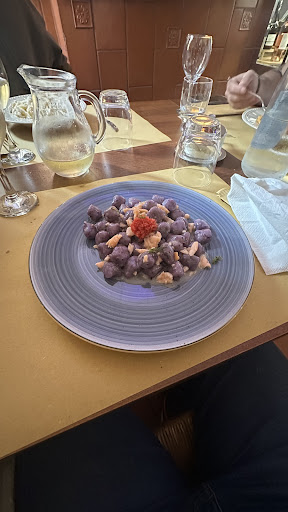 Read more....abbiamo deciso di provare questa osteria perché avevo visto diverse pubblicità,conoscevo il locale per altre gestioni passate,pochi tavoli,ambiente e apparecchiatura da osteria senza pressing per liberare il tavolo a fine pasto,oste gentile e servizievole,spiega le proposte e consiglia vini o amari.....in 4 noi abbiamo preso un buon tortino di funghi porcini(meno salsa o messa a parte farebbe esaltare di più i funghi),fantasia di mare e moscardini in guazzetto,dei buon spaghetti alla chitarra con lo scoglio. Direi che il.piatto top è stata la guancia di vitello al vino con mandorle e indivia....il baccalà fritto era buono peccato fosse freddo all'interno.Molto gradevole il vino consigliato,rapporto qualità prezzo discreto.....a testa sono sui...