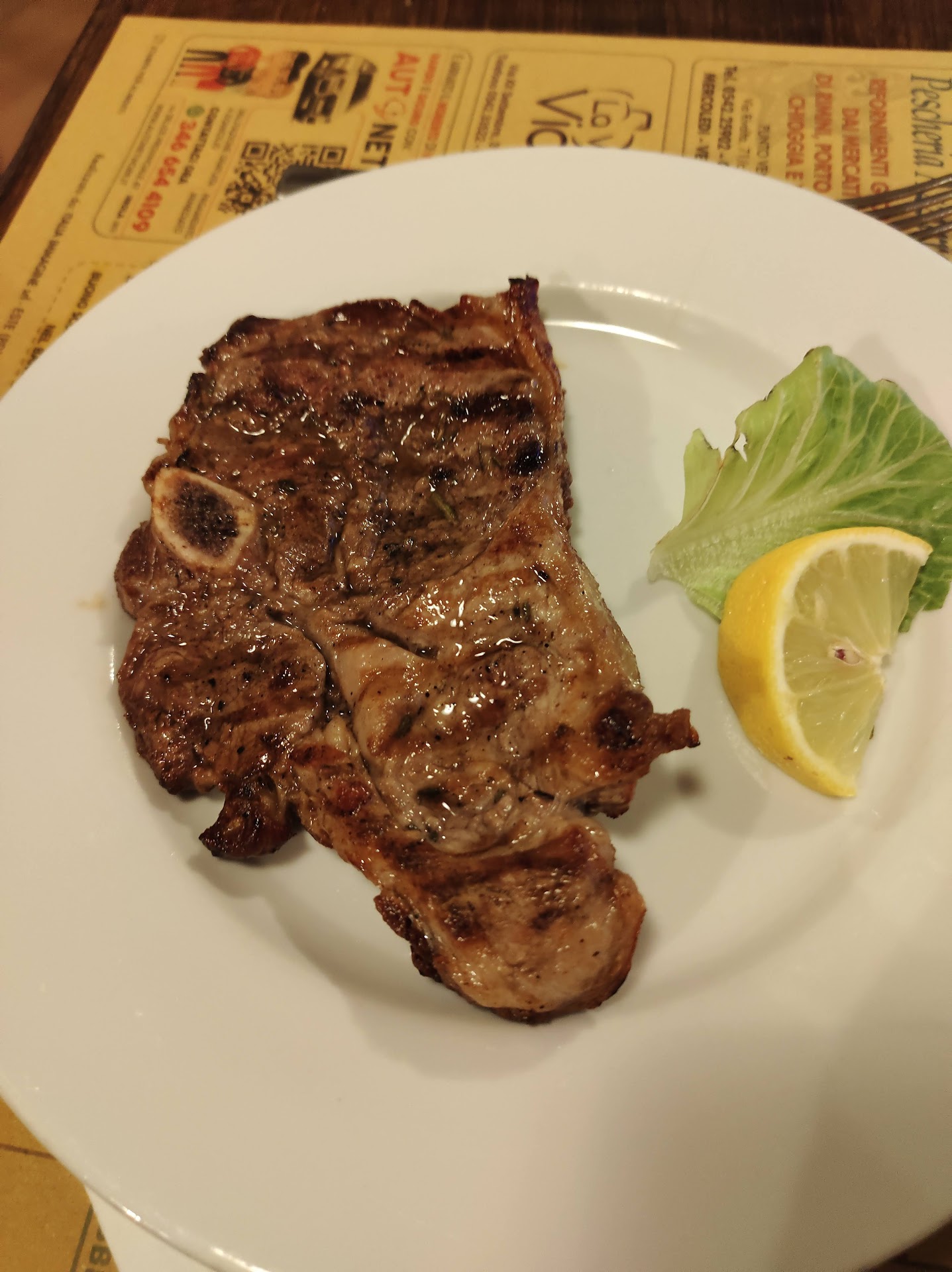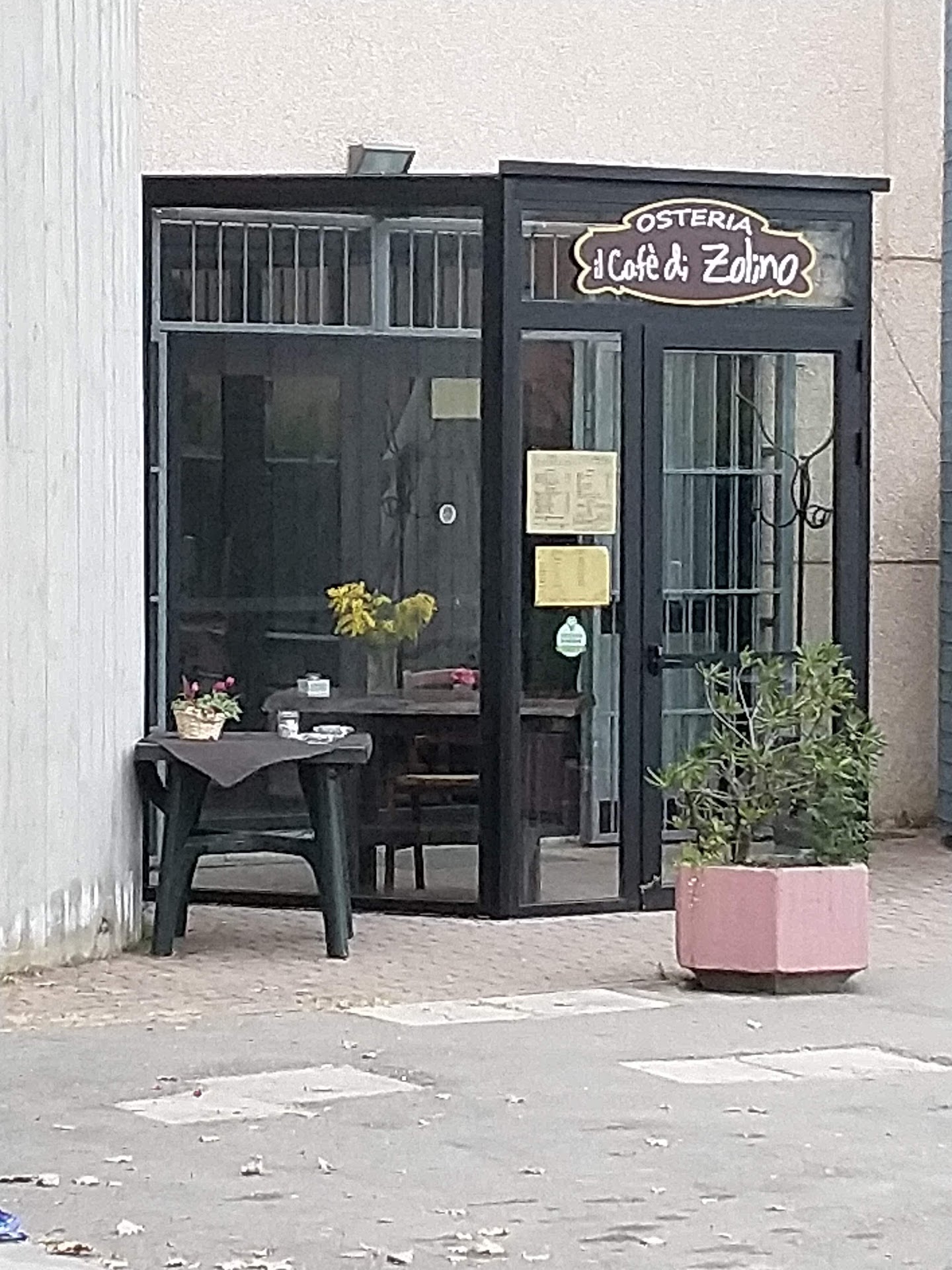Read moreAbbiamo scoperto questa piccola Osteria per puro caso, nascosta com'è all'interno del Centro Sociale di Zolino, dove, nelle serate di martedì, si balla con musica varia da dj. Il piccolo locale era praticamente al completo. Circa trenta posti a sedere o poco più. Ambiente semplice, tipico di osteria, ma il cosciotto di castrato e il coniglio, con contorno di patatine, erano veramente gustosi e teneri. Buoni i crostini e la pizza fritta, che con due minuti in più di cottura sarebbe potuta essere superlativamente croccante . Abbiamo optato per un vino sfuso rosso, dignitoso. Due caffè a concludere un pasto buono e abbondante. Costo...