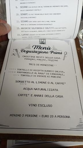 Read moreDa EVITARE!!!!! in gruppi, gruppo di 18 persone allettati dal menu presente sul sito internet del ristorante, arrivati sul posto il menu fisso era diverso non include ne coperto ne vino, premesso che non eravamo della zona e che non torneremo mai più dopo il trattamento riservatoci, siamo rimasti lo stesso nonostante la variazione, alle 13 si fa fatica trovare altri posti e non eravamo vicini casa ci siamo fatti più di 50 km, prendiamo 18 menu da condividere tra primi e secondi acqua e vino della casa, porzioni ridicole estremamente risicate, abbiamo chiesto spiegazioni prima al cameriere e poi al proprietario su come venissero calcolate ci è stato risposto che in cucina si calcolano 80 grammi a testa per la pasta ma trattandosi di pasta ripiena praticamente sono due o tre pezzi al massimo, idem per la carne vassoio da tre persone che era difficile da dividere per i commensali un pezzo di salsiccia una fettina di non so che della tagliata e della pancetta( porzioni come la pasta 80 grammi a testa) o siamo stati sfigati o qualcuno ha dei problemi con la matematica per calcolare tavoli da 18 persone, cmq alla fine 32 euro a testa per non mangiare quasi nulla. peccato perchè la qualità delle pochissime cose che mi sono arrivate erano buone. una nota per il titolare se si riscontrano anomalie fatte presenti dai clienti forse dovrebbe imparare ad ascoltare e non restare fermo sulle sue idee, poteva mediare meglio alle...