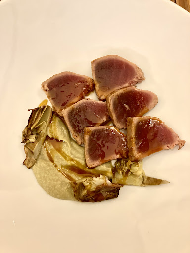 Read moreSiamo tornati a cena assieme a un’altra coppia di amici, per provare la nuova gestione dopo aver sentito pareri discordanti. Tonno di ottima qualità profumato e ben servito, battuta deliziosa con freschi abbinamenti..e purtroppo qui finisce la critica positiva. Tortelli al pecorino scolati e messi nel piatto con pezzi di pera volpina insapore, sfere di seppia anonimi in un brodetto insipido, maialino a bassa temperatura composto da 70% di cotica grassa immangiabile, faraona a spiedino leggermente bruciacchiata. Nota in parte positiva sulla cotoletta, ben eseguita e fedele alla ricetta. Dolci senza infamia né lode. Cantina non ricchissima, ma etichette ben selezionate e ricercate per ogni palato. Imperdonabile, vendendosi come enoteca, non cambiare i calici tra due vini completamente differenti senza nemmeno preoccuparsi di chiederlo ai commensali. Non posso esprimermi sui piatti non provati che sulla carta sembravano davvero buoni, ma giudico quelli...