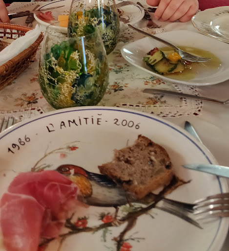 Mezzogiorno e 30 minuti, alla ricerca di un posto caratteristico dove fermarsi a mangiare possibilmente qualcosa di "locale". Noto l'insegna all'ultimo istante, riesco a fermarmi in tempo e in retromarcia entro nel piccolo parcheggio. Dall'ingresso del locale una tranquilla signora ci viene incontro, e ci informa che non abbiamo prenotato, e lei lavora solo su prenotazione, pertanto ha ben poco da offrirci, ma se ci accontentiamo, può rimediare qualcosa di fresco, ad esempio, prosciutto e melone. Perché no? Ci accompagna dentro, dopo i controlli anti covid di rito, Ci guardiamo intorno e rimaniamo a bocca aperta... Non sembra affatto un ristorante, anzi, sembra di entrare in un bel salotto dove il proprietario ha raccolto molti oggetti, di gusto, ma provenienti da molte parti del mondo, comunque, un posto molto accogliente! I tavoli a disposizione non sono molti e, con le regole anti covid, i posti ancora meno, ma in grado comunque di ospitare un gruppo numeroso Arriva dell'acqua, dell'ottimo vino, ed il prosciutto e melone...ma anche Zucchini del proprio orto, farciti (fantastici), uno squisito assortimento di formaggi, un ottimo sformato di patate appartenenti alle proprie tenute.... Insomma, noi eravamo già "pieni", ma continuavano ad arrivare "proposte di portate". Alla fine del pasto la titolare ci intrattiene affabilmente a raccontarci la provenienza degli oggetti presenti nel locale e, oltre a scoprire una vita inaspettatamente "vissuta" in giro per il mondo, scopriamo che DIETRO AD UNA REGOLARE PRENOTAZIONE é in grado di viziare il cliente oltre ogni aspettativa. Paghiamo, ed abbiamo una ulteriore piacevole sorpresa nel prezzo ed anche un regalo "ricordo" prodotto nella sua azienda. Manca ancora una sorpresa....uscendo ci accompagna nella sua "galleria fotografica", e scopriamo che tanti personaggi famosi sono passati di lì, la maggior parte a mangiare il suo speciale cuscus! Che dire? Spero che qualcuno che legge questa recensione voglia provare questa esperienza, perché sono sicuro che ne rimarrà piacevolmente sorpreso. .....e quando torno in Val d'Aosta, prenoterò...