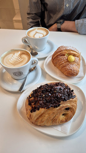 Read moreSiamo stati stamattina a colazione, io ho scelto cappuccino e il loro pain au chocolat: che dire ? Di pac ne ho provati tanti, e questo è stato uno dei più buoni in assoluto mai mangiato. Impasto burrosissimo, morbido, super alveolato e cotto alla perfezione, con due spesse stecche di cioccolato fondente di qualità e una ricopertura extra di scagliette cioccolato che fa la differenza con un tocco in più di croccantezza e cioccolatosità. Sicuramente tornerò per provare altri prodotti. Unica pecca: davvero pochissimi posti a sedere e non offrono servizio al tavolo. Personale gentile e...