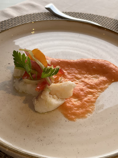 Read moreMy wife and I had the tasting menu while our son had a salmon fillet with vegetables. The salmon was good. The tasting menu, not so good. I debated writing this because there was effort put in and it’s a tasting menu (so we didn’t expect everything to be something we’d like), and the service was good… but for the price of the meal, I figure it’s worth providing feedback (as we opted not to after our meal since our kid was falling asleep at the table by the end of the night). So here it is: the portions are generous and the dessert was nice (sorbet + merengue & fruit) but the octopus was severely overcooked while nearly everything else (risotto, fish, etc.) was undercooked and some of the combinations were surprising (even for a tasting menu) - like the squirt of mayonnaise (?) on saffron risotto w/ prawn tartare or the combination of raw celery, mash potatoes, & white fish. I think the Michelin guide (how we found the restaurant) described it as a good value but im not sure that was...