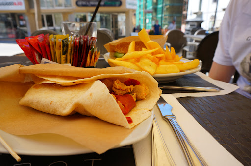 First the good things, the location is spot on the main streat and easy to reach, and The main waiter was very nice and spoke good English. Now the bad things : 1: Shortly after being seated and given a menu, a second waiter showed up and took our menue away from us again, without a single word. It felt very rude and unwelcoming, but we just picked up a card from a different table. The card is hard to understand, mainly drinks, and rhe food items mixed in between, only listing one (overpriced) breakfast option. We ( Stupidly) went with it anyway. We ordered a tea, which was barely a whole cup, and a water, which turned out to be a plastic bottle generic brand one. The "breakfast" portion was laughable, horrible, grainy, scrambled egg, definitely from a package, 3 small slices of bacon, only 3 pieces of toast, so one and a half slices, some butter and marmalade and half a tomato plus some arugula as "decor". We ended up paying 50 euros for that very very small and lacking breakfast. It's propably our own fault for falling into that tourist trap, so please be smarter then us and...