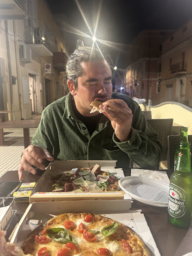 Read moreThis has been the best pizza I had in all of Olbia. You can taste the freshness in the products but must important the pizza has a crunch all the way thru ( not like most restaurants that get soggy as you add different topping ) I am from New Jersey so I am picky about my pizza!! The wood oven gives it the perfect chard flavor ( not burn) not too heavy on the tomato sauce so all the flavors are there. List do yourself a favor and try this place it will not disappoint you will thank yourself for going!! I will say if you go too early you might have to sit on the side with the sun hitting you and it seems like the street doesnât get any cool wind so I will say go when the sun is almost down( as you see my only negative was about the heat( spoiled...