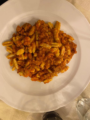 Pour le repas, je ne suis pas trop poisson/fruit de mer, mais il est possible de manger les gnochettis Sardis, qui étaient délicieux, ou bien des pièces de viande (vu sur la table voisine, les morceaux étaient généreux et la cuisson maîtrisée) mais pas les autres spécialités sardes de viande. Je vis en Italie, et ce n'est pas la première fois que je mange ce genre de plats. Nous sommes même assez exigeants sur les ''Primi''. Dans d'autres restaurants touristiques ils utilisent de la sauce tomate en conserve très liquide, à l'arrière goût reconnaissable, et peu de viande histoire de maximiser le profit sur le dos des touristes qui ne sont pas habitués . Eux, non. Leur sauce était parfaite, et généreuse en saucisse. Les gnochettis me semblaient fait main. Le top.