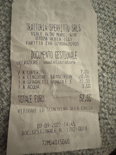 Read moreEsperienza Pessima.. Premesso che qualche cenetta a base di pesce l’ho fatta, per fortuna non la prima con la mia dolce metà, altrimenti che figuraccia.. iniziamo col dire che ho ordinato una bottiglia di vino Bianco vermentino di Sardegna easy 30€, 3 scampi 3 ostriche 3 gamb Rossi per un totale di 52€ altissimo il prezzo ma benissimo così fino a qui per quanto mi riguarda il pesce era buono, la mia compagna tris di affumicati, immangiabile. Andiamo al tasto dolente i PRIMI.. ho ordinato uno Spaghetto all’astice del costo di 30€ che tutto era tranne che spaghetti all’astice. Li avrei pagati anche 50€ ma l’astice dov’era? Il Sapore? zero.. era uno spaghettini con 3 pomodorini.. pessimo.. costo dell’astice al kg? 30/40€ astice Nel piatto? Neanche L’ombra.. volevo dire a Paolo "Sperrittu" Degortes dalla trattoria di Olbia a mare.. si firma così in più risposte e recensioni ecco..Altro non è che un pseudo “cuoco” che tra una preparazione e l’altra si reca in cassa a far pagare conti salati ai clienti, la domanda sorge spontanea:” Le mani tra una portata e un conto le lavi?” Cassa-Soldi-Cucina vabbè.. oltre ad offendere i clienti che recensiscono il postaccio che appunto gestisce, etichettandoli come dei morti di fame o dei culinari kebabeschi, tipico stile barbaro da pseudocuoco, non dico pseudoSardo perché offenderei amici, che a differenza sua portano in alto il nome di Olbia e della Sardegna stessa.. questa è l’ENNESIMA RECENSIONE confermata da tante altre recensioni a dir poco allibite, da parte di una moltitudine di clienti insoddisfatti ed...