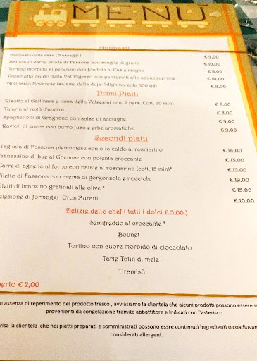 Read moreClassica trattoria piemontese con prodotti tipici della zona. Qui è possibile trovare tanti prodotti della zona (cosa molto apprezzata) come duja, fassona, formaggi, etc. Io, personalmente mi sono trovato bene per quanto riguarda la qualità dei piatti. I ravioli di zucca erano veramente ottimi e i formaggi tipici erano qualcosa di eccezionale! Anche l'antipasto della casa l'ho trovato buono, con una portata che sembra scarsa, ma che ti riempie (soprattutto grazie alla carne in umido). Se il prezzo ci sta, ovviamente pagato qualcosa in più perché abbiamo preso 3 bottiglie di prosecco e una di rosso, però il prezzo nella norma, il servizio ha avuto qualche leggera pecca (niente di grave intendiamoci però c'è stata qualche leggera incomprensione fra noi e la cameriera). Nonostante questo, vi consiglio il posto se volete provare qualcosa della zona, ma senza...