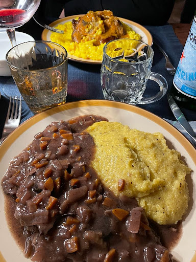 Read moreHo apprezzato tantissimo l'antipasto servito sul tagliere. Aver saputo come sarebbe proseguita la cena, avrei preso un altro antipasto. Seduti al tavolo tra le 20:45 e le 21:00, dopo aver ordinato abbastanza in fretta, ci è stato servito l'antipasto più di un'ora dopo e i primi/secondi ben un'ora e passa dopo aver finito l'antipasto. Inutile dire che dopo quasi 3 ore eravamo stufi e abbiamo optato per un "veloce" caffè e siamo andati a casa . La sorpresa è stata in cassa: tagliere di antipasto diviso in 4, due primi e due secondi, bottiglia di vino normalissima (non ricordo nemmeno cosa fosse, una di quelle da 15€ che sta all'inizio della carta dei vini e che solitamente si trova a pochi euro al supermercato - forse la cantina era Il Pozzo) 80€ a coppia. E il bello è che l'unico mezzo di pagamento accettato sono stati i contanti, ovviamente lo scontrino fiscale è stato un miraggio. Mai più, dato che i risotti alle fragole avevano un unico sapore: il sale. La carne senza lode e senza infamia. Mi spiace perché se mi fossi fermato all'antipasto avrei dato anche una stella in più. Ah, dimenticavo: una Menabrea...
