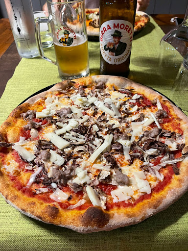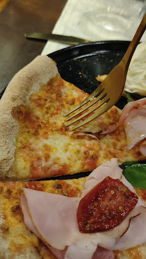 Personale ok e per quanto mi riguarda ambiente troppo caldo e aria condizionata spenta (ma io sono uno che soffre tanto il caldo). Hamburger molto buono ma le pizze purtroppo no. All'arrivo (ore 21:00 di sabato sera nel locale già deserto) ci hanno dato una buona focaccia al rosmarino con un impasto morbido e gustoso, cosa che ci ha fatto ben sperare per le pizze ma poi è arrivata la delusione, le 3 pizze erano estremamente secche e avevano la medesima consistenza di quelle surgelate. Eravamo soli nel locale e forse il forno era già spento. Probabilmente il problema è stato la cottura troppo lunga in un forno che non era in temperatura. Prendendo la fetta di pizza dal bordo questa rimaneva perfettamente dritta e la mozzarella era anch'essa secca e perfettamente incollata alla superficie dell'impasto (impossibile da staccare). Era così secca che arrivata al tavolo era già fredda. A fine pasto ho segnalato la cosa al ragazzo che ci ha serviti con impegno notando una reale reazione di dispiacere, ma purtroppo a parte l'hamburger ci è andata malissimo, spero sia solo un caso altrimenti non mi spiego tutte le altre...