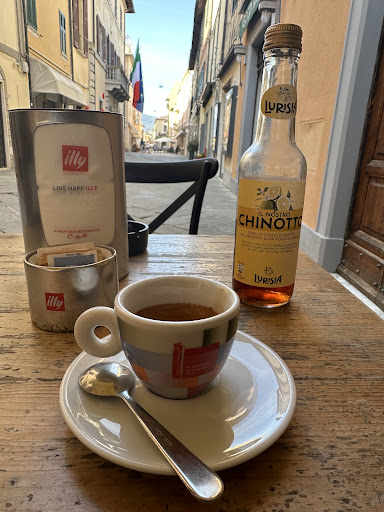 Read moreIl piccolo, classico caffè italiano, a conduzione familiare, autentico e accogliente come ne sono rimasti pochi. Ottimo per una piacevole pausa, una bella coazione, uno spuntino e quattro chiacchiere, i tavolini fuori invitano a sedersi. Si trova proprio all'inizio del corso di Orbetello, più o meno di fronte alla libreria. Molta gentilezza, e si sa, un giorno senza sorriso è un giorno perso! Lollo...
