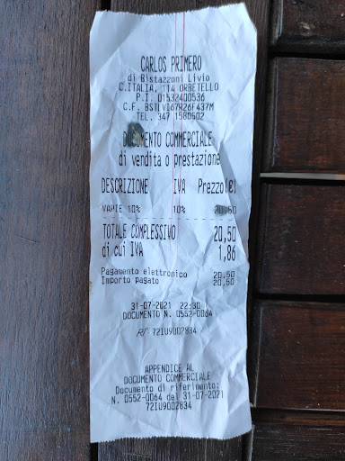 Read moreDa anni frequento assiduamente il Carlos, siamo diventati presto amici, tanto da considerare questo storico luogo orbetellano come una seconda casa. A chi mai verrebbe in mente di recensire una serata “a casa di amici”?! Ci ho pensato solo adesso, e quindi sono qui per dire che non importa quanto tempo abbiate, se quello di un saluto e un caffè o quello di una chiacchierata durante una cena, al Carlos troverete una famiglia che vi tratterà come tale. Offrendovi solo i prodotti migliori della nostra terra, scelti con un’esperienza mai vantata ma tangibile, dai taglieri ai vini, con un’ enoteca degna di prestigio. Insomma , per rispondere alla tipica domanda “tu che sei del posto...” io che sono di qui è grazie a loro se ho conosciuto l’olio buono, la bottarga, il salume, il formaggio migliore che si possa offrire, e se ho imparato a bere del vino degno di essere...