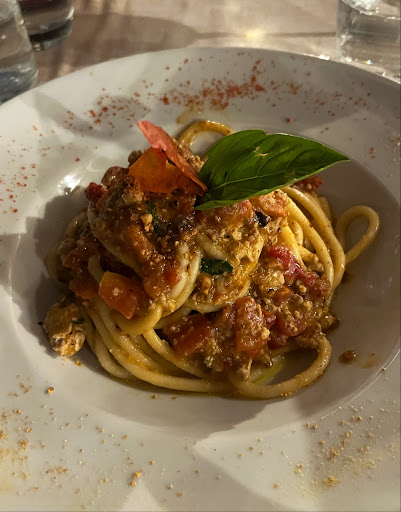 Read morePosto bellissimo, dai tavoli in veranda si gode un tramonto strepitoso. Per il resto, si distingue sicuramente rispetto ai tanti locali della zona, ma ahimé ci sono tante cose da migliorare. Tavolo da 3, ma ci sono le posate solo per uno. Chieste, arriveranno solo per un altro coperto, quindi abbiamo dovuto chiederle di nuovo per il terzo coperto. 55 minuti per avere la prima portata. Capisco che è agosto, capisco che è cucina espressa, ma sono comunque troppi. Per avere la seconda portata è andata un pochino meglio, ma sempre oltre mezz'ora. E quando arrivano, spiegazione nel dettaglio di ogni singolo componente con nome del produttore ecc. Capisco che siano presìdi SlowFood, ma dopo tutta l'attesa si finisce per mangiare le cose ormai fredde... Personalmente mi infastidisce. Veniamo al cibo: pesce sicuramente freschissimo infatti sul menù non sempre viene specificato quale tipo di pesce perché si basa su cosa ha regalato il mare quel giorno. Primi anche troppo abbondanti, ma quello scelto da me, spaghetti di un cuoco apolide di sinistra, bocciato. Alici pecorino e biscotto salato sbriciolato. Alici fresche ma di pecorino nessuna traccia nè alla vista né al gusto, di biscotto salato soltanto due giuro due briciole sperse nel piatto, presenza di finocchietto che non era indicato, altrimenti non lo avrei preso perché non mi piace (indicare sempre TUTTI gli ingredienti!) e inoltre scorzette di arancia candita e una fettina di arancia disidratata come decorazione, gusto che a mio parere cozza con tutto il resto (e la fettina durissima immangiabile e quindi solo disturbo). Un piatto non azzeccato. L'ho in parte lasciato. L'altro primo era pici con granchio blu, buoni ma mangiabili ovunque. Meglio sugli antipasti e sui secondi, dove però le porzioni diventano minimal. E nel mio secondo verdure fritte pastellate croccanti ma untissime, troppo, e pera picciola che sono solo due pezzetti poggiati al lato del pesce al sesamo, e quindi mi chiedo che senso abbia, è slegata buttata lì, è poco più che decorazione. Prezzo giusto per la cura con cui si cucina e per la freschezza del pesce, personale gentilissimo ma suggerisco meno forma e spiegazioni più brevi (scrivetele e basta un accenno) e più attenzione al timing e alle richieste del cliente: dopo aver cercato più volte di attirare la loro attenzione, per il conto siamo dovuti andare noi alla cassa, per non dover aspettare ancora, sfiniti dalle attese precedenti. MIGLIORABILE. PS: c'è comunque una fila enorme, in stagione prenotare una...