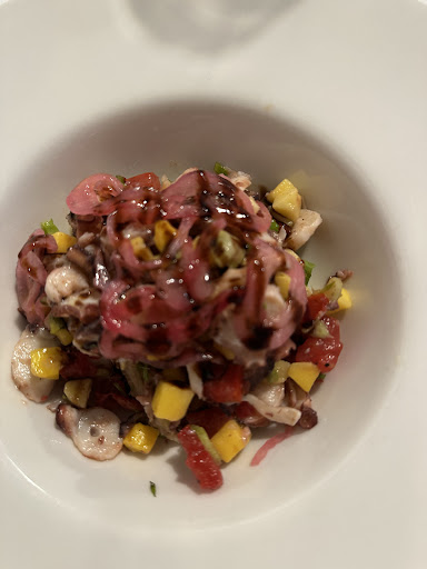 I had a very nice meal here on my first evening in Tuscany. I went for the affettato misto (mixed cured meats) as an antipasto and it had everything I like on it, so it started the meal well! Then as my first dish (primo) I went for the paccheri al tonno e pistacchio (tuna and pistacchio pasta). It was very nice, and the combination of fresh cooked tuna with chopped pistacchio and diced courgette went really well together. Finally as my main dish (secondo) I shared a frittura di gamberi e calamari (deep fried prawns and calamari). They were light and crispy and went down very well. Everything I ate was top notch and great value for money...but I'm gonna give it 4 stars as the service was stuttered and our dishes all came out at different times, so it felt like we were all eating separately apart from the last dish that we shared. Service was fine. Book ahead to avoid disappointment, especially in the...