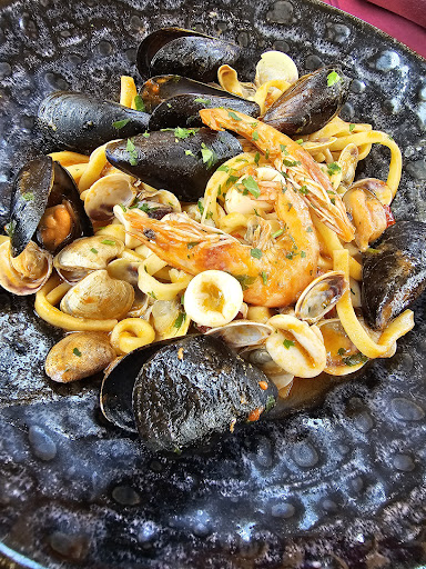 La frittura è stata imbarazzante: quattro gamberi contati e una manciata di totani e polipetti palesemente surgelati e di scarsissima qualità, gommosi e completamente insapori, tanto che l'abbiamo a malapena assaggiata e, a richiesta del perchè da parte del cameriere, abbiamo fatto presente la cosa in maniera garbata. Sinceramente, non capisco come si possa servire un piatto del genere.