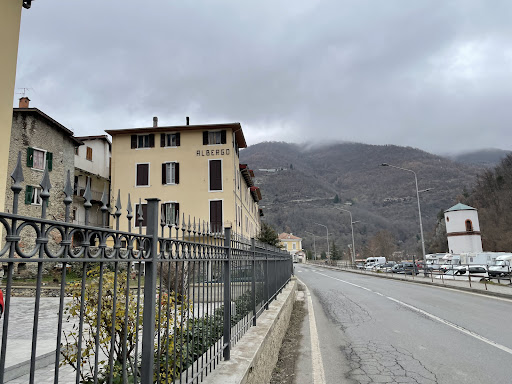 We arrived at around 13.30 and the place was crowded, but they found a table for us. Everybody was extremely friendly. The restaurant is mostly for the guests of the hotel. They usually have a choice of three/four first courses and three/four second course plate with meat and veggies. We all got the typical lasagne di Ormea: whole wheat lasagna with potatoes and local cheese (mind that the lasagna is not the usual layers of pasta, but actually some cuts of pasta sheets of about the dimension of a typical post-it sheet) and then we had a gigantic serving of cinghiale (wild boar) with potatoes. All was excellent, delicious, served with pride and perfectly cooked. And fast! My dessert was also special: the typical chocolate pudding called "bunet", really dark, thick and luscious. Wine, water, coffee. The whole meal was just 25 euros each. What a treat! Stop in Ormea next time...