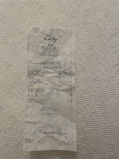 Read morePessimo servizio, proprietario arrogante e maleducato, con una compagnia di 10 amici abbiamo abbandonato il locale dopo aver regolarmente pagato le consumazioni che sono rimaste intatte sul tavolo. Un consiglio a tutti, verificate lo scontrino fiscale, il proprietario cerca di fare il furbo, ci ha servito birre in bicchieri di plastica da 0,20 e ce le ha fatte pagare come birre da 0,30. Ho fatto notare la discordanza tra lo scontrino e il servizio, e il proprietario ha ben pensato di aggredirmi verbalmente e far sparire lo...