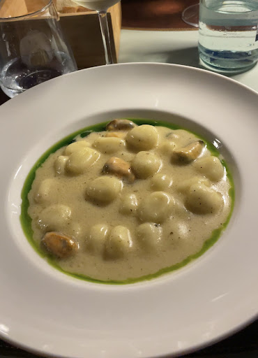 Ok so far. But then the waiting began. 30 minutes until we got a glass of water. 45 minutes until dry bread was served (probably from the hotel’s breakfast since it was dry and tasteless - still we had to pay 8€ for it). After 1 hour we finally got our wine. With no help of course from the waitress - her recommendation of wine was this: “you should drink white wine to the gnocchi”. Ok, can you recommend one? “No”. But you have one paired to the tasting menu? “I don’t know which it is.” Jesus, then we gave up trying to get recommendations.